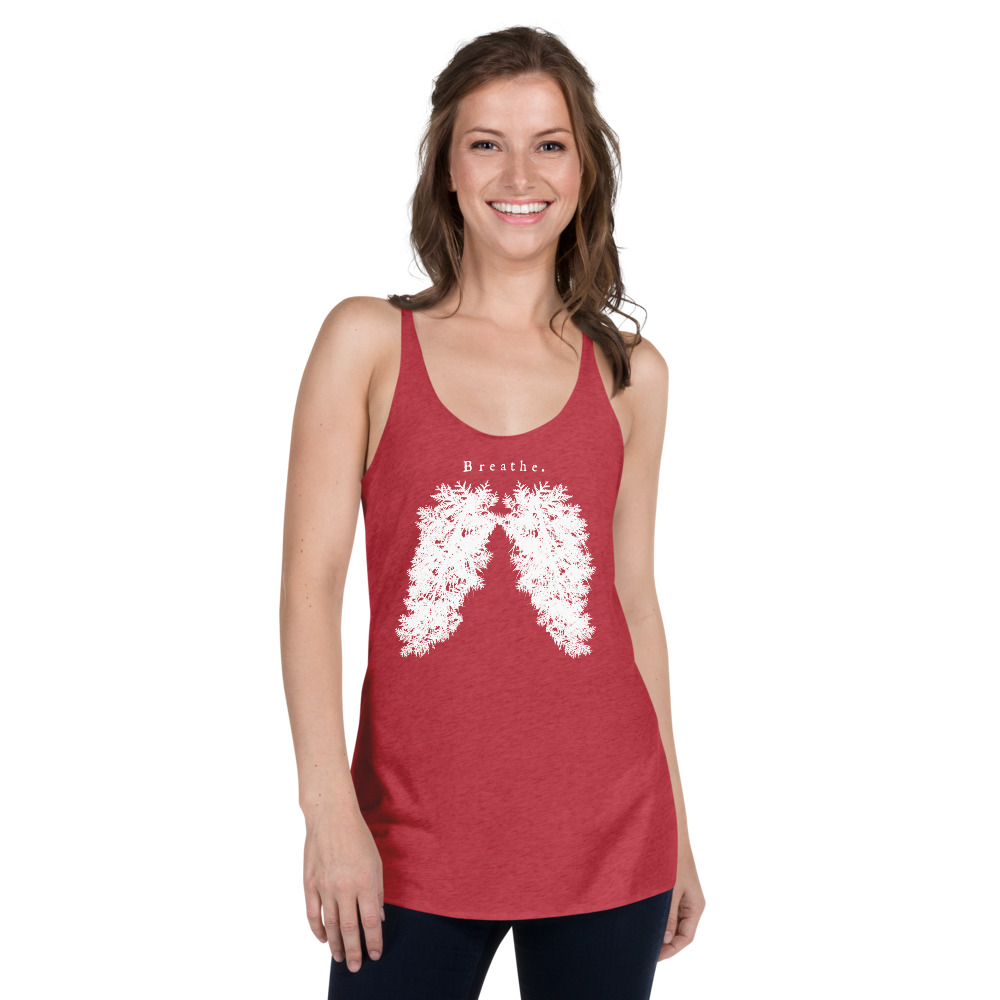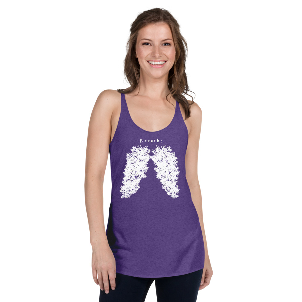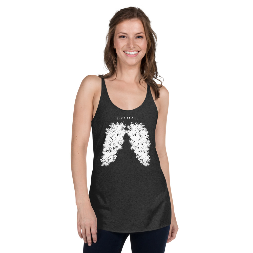 This racerback tank is soft, lightweight, and form-fitting with a flattering cut and raw edge seams for an edgy touch.