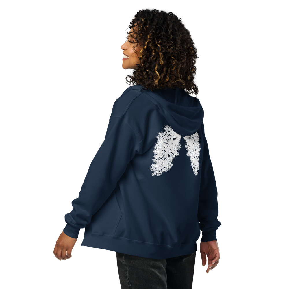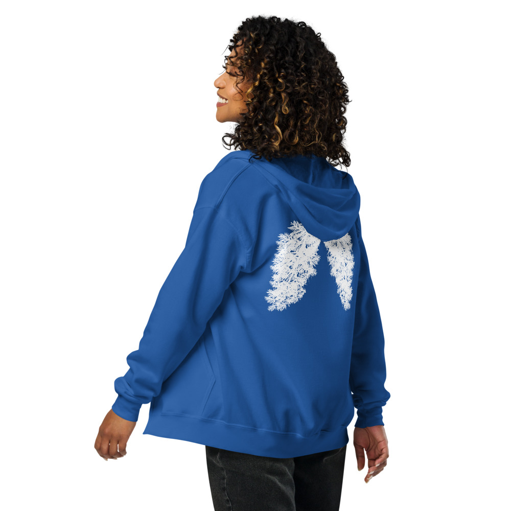 Designed with style and comfort in mind, this hoodie will quickly become your new favorite. Its made from soft fleece inside and outside, with a sturdy metal zipper, convenient front pockets, and a hood with color-matched drawstrings.